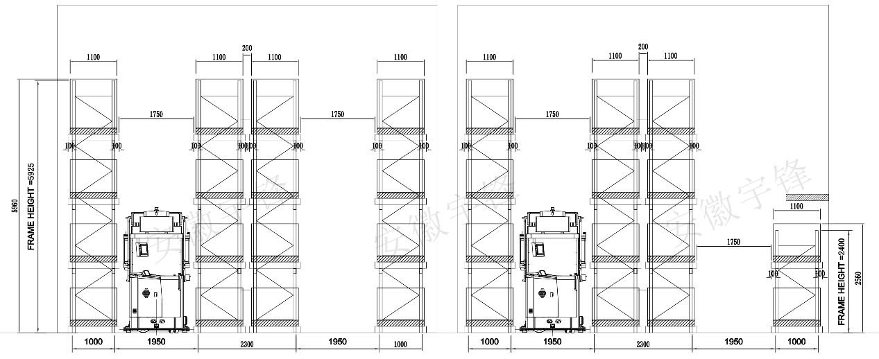 本項(xiàng)目涉及2個正負(fù)極立體庫,1000個貨位,使用智能倉儲裝備系統(tǒng)利用高層貨架儲存貨物,投入宇鋒智能4臺激光導(dǎo)航三向叉AGV,額定載重1000KG,貨架之間最小堆垛通道預(yù)留1900mm,整車車身1500mm,貨箱兩邊各突出100mm,,在實(shí)際操作空間僅有200mm的巷道內(nèi)完成三向旋轉(zhuǎn),進(jìn)行5000mm高度貨位的滿載自動高密集存儲作業(yè)(見圖1),面對有限的堆垛空間及多點(diǎn)位的密集搬運(yùn),客戶最開始并未考慮使用叉車式AGV,采用堆垛機(jī)是客戶理想化的選擇,但因堆垛機(jī)的特性,客戶需預(yù)留一層空間,實(shí)際貨架只能存放3層,庫容量減少了30%,并且這類設(shè)備只能在倉庫內(nèi)運(yùn)行,還需配備其他設(shè)備才能完成貨物的出入庫工作,而在機(jī)械運(yùn)行時還會產(chǎn)生粉塵,直接影響電池品質(zhì),而選用窄巷道三向叉車agv,可預(yù)留4層貨架,減少占地面積,完美符合客戶預(yù)期的倉儲量,最大限度的完成整廠物流工作,在價格上也相對更具優(yōu)勢,降低儲存成本。