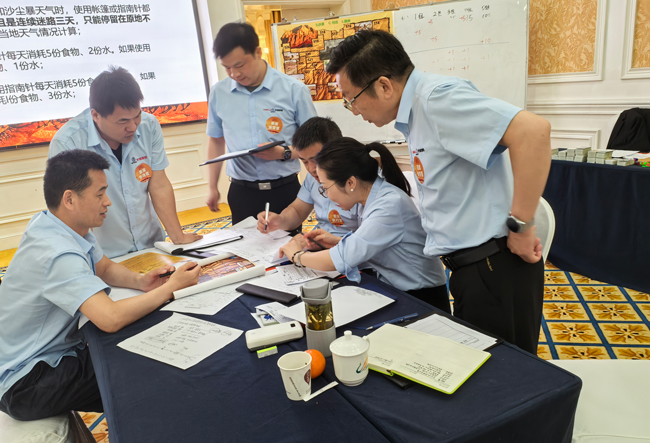 5月5日的活動更具趣味性和挑戰性,邀請到國內頭部拓展機構的合伙人級全國金牌教練進行《沙漠掘金》室內沙盤模擬活動。在活動中,各團隊成員迅速進入角色,從資金籌集、物資采購到路線規劃、風險應對,到最終取得商業成功,每一個決策都關乎團隊的“生死”。面對變幻莫測的“沙漠環境”和激烈的競爭,團隊成員們充分發揮智慧與勇氣,緊密協作、步步為營,共同應對各種挑戰。