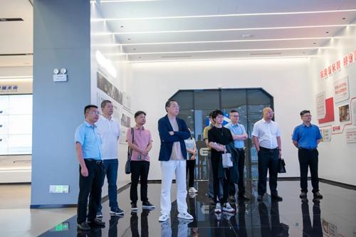 德馬科技董事長卓序一行先后參觀了智能物流產業園及數字化展廳,軟件中心總助汪磊對公司的發展歷程、業務板塊、技術創新等方面做詳細介紹。
