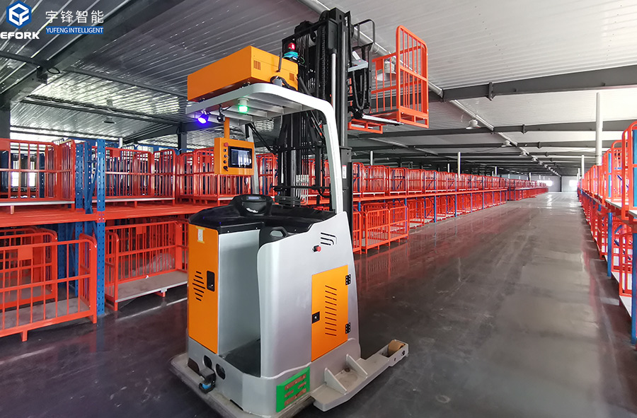 某紡織生產企業引入宇鋒智能移動運輸解決方案,宇鋒團隊根據項目現場整體布局,規劃出最優的行駛路徑,部署2臺激光SLAM導航堆垛式AGV、3臺激光導航剪刀叉式AGV、2臺磁導航背負頂升式AGV、1臺磁導航背負輥筒式AGV,利用AGV與調度系統(WCS、AGVS)、WMS實現物料的室內外混合智能轉運、室內存取、毛坯入庫、成品入庫、空料框回庫等流程的自動化,完成了三個車間之間的物流無障礙自動輸送,大大降低工人的勞動強度。