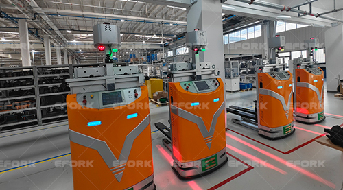 本項目采用專一AGV兼容二十種以上托盤在極窄的通道進行柔性轉運,實現原材料,半成品,成品之間轉運;同時實現多種AGV之間高度糅合,高效配合,實現工廠全天24H不間斷生產。進一步實現貨物擺放間隙縮小到75mm,最大化利用了倉儲的空間,極大的提高了客戶的存儲量。