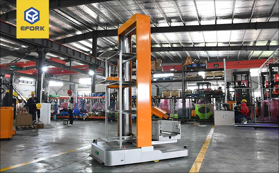 車體結構緊湊,寬度小,舉升高,側向插取貨物,堆垛通道小,提升倉庫的庫容量;