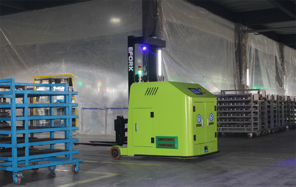 采用末端反射板激光混合導(dǎo)航技術(shù),配置自主產(chǎn)權(quán)叉車