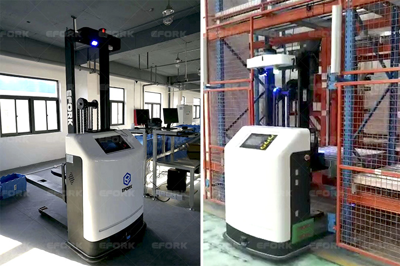 技術亮點:該項目使用我司自主設計研發的窄通道專用車體,AGV可在2米通道內實現直角堆垛作業,轉彎半徑<1300mm,車體小巧靈活,最大載重2000Kg。