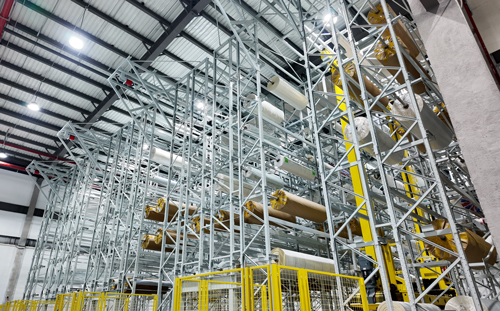 ●在立體存儲環節,宇鋒智能同步定制堆垛機貨叉結構,精準適配布卷特性,確保系統高效穩定運行。
